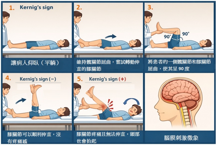 與布魯津斯基測試 (Brudzinski Sign)一起評估(上一篇)